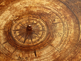 Compass and astrolabe with fine etching, beautifully crafted in pyrogravure, symbolizing navigation and exploration, antique tools, vintage engraving concept