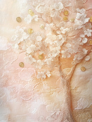 tree coin shaped leaves lace draped chantilly fabric covering branches organic beauty intricate material delicate nature decorative ornamental texture aesthetic refined seamless detailed embroidery vintage artistic textile soft sophisticated fusion elegant floral ethereal handcrafted botanical foliageImagine Buddy