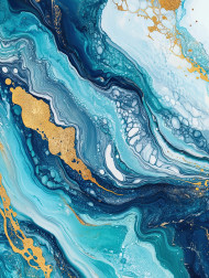 A winding river with marbled reflections, flowing in smooth ebru patterns, the swirling textures enhance the serene landscape, blending nature with artistic fluidity
