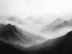 mountains layers mist depth landscape serenity grayscale monochrome oil grisaille painting composition distant nature brushwork shading traditional atmosphere peaceful perspective realism scenic vast dramatic range wilderness shadows tranquil panoramic detailed mood silence background fading grand texturesImagine Buddy
