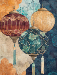 lanterns festival grisaille glowing monochrome batik fabric art traditional hanging lights soft shadows festive atmosphere celebration texture cultural shading contrast detail paper warm delicate elegant classic night illumination decoration artwork textile illustration pattern heritage craftImagine Buddy