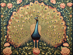 peacock bird plumage tapestry flemish tapestry verdure antique woven intricate classic regal vibrant decorative textile heritage ornamental artistry elegant detailed majestic medieval wildlife fauna colors craftsmanship nature beauty rich european noble historical vintage feathers fine artistic masterpieceImagine Buddy