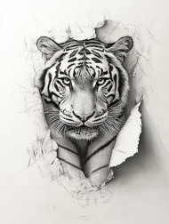 pencil drawing sketch tiger feline animal wildlife realistic fur shading graphite texture stripes predator detailed fine art monochrome eyes nature portrait lifelike wilderness elegant majestic sharp fierce artistic black white illustration hand drawn craftsmanship zoology traditionalImagine Buddy