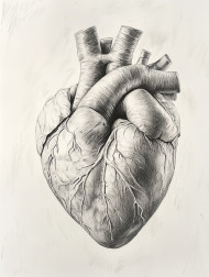 pencil drawing sketch heart anatomy medical realistic shading graphite texture veins arteries detailed fine art monochrome scientific biology health illustration organ structure educational circulatory diagram sketching muscle medical human artistic black white hand drawn traditionalImagine Buddy