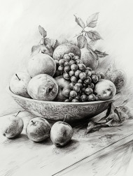 pencil drawing sketch fruit apples pears grapes realistic shading graphite texture detailed fine art monochrome still nature food organic healthy fresh composition harvest nutritious juicy garden artistic black white illustration hand drawn traditionalImagine Buddy
