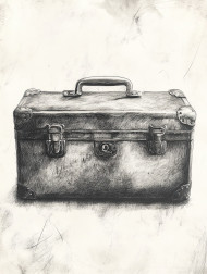 Vintage suitcase in soft shading, pencil drawing capturing worn leather texture, buckles, and travel nostalgia with sketching pencils and graphite pencil for realism