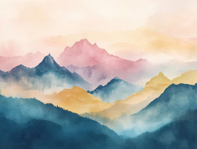 watercolor paint mountains misty soft layers fading dreamy landscape daniel smith watercolour paper tranquil nature scene depth peaks atmosphere artistic wilderness peaceful fog sky scenic blue earth environment outdoor terrain serene valley clouds summit rolling perspective quiet sketchImagine Buddy