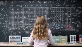 Back view of girl working on math problems, back to school stock images ai, back to school ai prompts