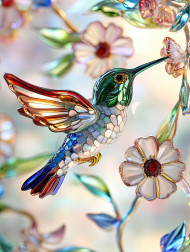 hummingbird hovering blossoms wings shimmering millefiori glass beads pendant nature delicate bright artistic intricate vibrant flight detailed beauty floral tiny colorful exotic bird elegant hovering garden dynamic craftsmanship soft glowing inspiration jungle paradise peacefulImagine Buddy