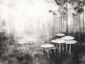 cloud mushrooms misty forest ethereal soft blending chinese ink brush painting nature mystical traditional artistic detailed organic surreal symbolic peaceful abstract fluid movement subtle delicate refined harmony oriental dreamlike natural soft expressive fine imagination sereneImagine Buddy