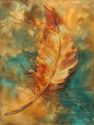encaustic paint encaustic art feather delicate glow floating airy elegance soft organic texture fine luminous gentle detailed artistic ethereal subtle flowing light refined nature beauty weightless smooth intricate expressive depth graceful contrast radiance motion feathered designImagine Buddy