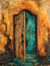 encaustic paint encaustic art wooden door weathered rustic texture peeling paint vintage aged detailed antique history depth classic charming faded storytelling entrance artistic textured nostalgic distressed wood natural historical moody elegant organic craftsmanship structure weathered traditionalImagine Buddy