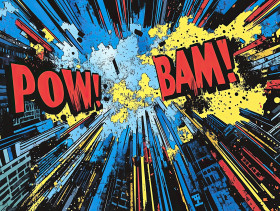 Dark clouds and lightning flashing over a city skyline as a thunderstorm rages, comic book style, 3d comic style, anime style comics