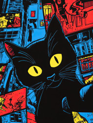curious cat midnight adventure sneaking dark alleys moonlight exploring secrets night comic strip calvin hobbes art feline mysterious stealthy whiskers nocturnal urban shadow hunter whiskers alleyway prowler mystery silhouette wandering solo feline nighttime observation discoveryImagine Buddy