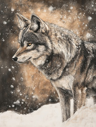 wolf lone snow wilderness frost eyes horizon survival isolation resilience winter nature wild predator cold animal fur endurance strength alert silent freezing solitude stare powerful majestic icy mysterious solitude conte drawing charcoal pencilImagine Buddy