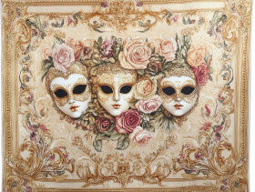 masquerade ball dancers masks costumes elegant ornate festivities mystery glamour tapestry aubusson verdure antique woven detailed vibrant artistic decorative classic traditional heritage craftsmanship celebration theatrical carnival performance fashion opulent performance culture historical enchanted mysterious sophisticationImagine Buddy