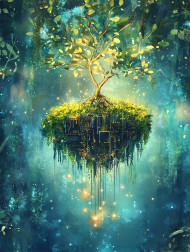 circuit board resting kokedama moss ball lush bed nature technology sustainable innovation eco friendly design fusion greenery contrast environment balance futuristic conservation harmony foliage integration modern growth energy sustainable electronics organic advancement unique futuristicImagine Buddy