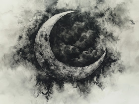 crescent moon drifting clouds ink drawing dreamy night sky celestial illustration mystical atmosphere pen pens lunar stars ethereal silhouette cosmic abstract fantasy astronomy quiet peaceful solitude solitude space astrology serene magic artistic delicate monochrome gentle darkness floatingImagine Buddy