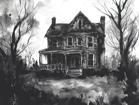 haunted house ink drawing eerie windows crooked roof spooky atmosphere ghostly mansion night pen pens black horror mystery gothic creepy abandoned supernatural silhouette eerie dark historic fantasy dramatic haunted classic chilling shadowy sinister vintage detailed texturedImagine Buddy