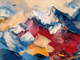 mountain peaks misty clouds rise palette knife drawing bold textures serene wilderness altitude scenery nature landscape fog remote dramatic rugged peaceful summit breathtaking adventure brushwork sky rocky artistic solitude towering cool fresh crisp expansiveImagine Buddy