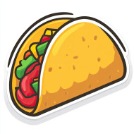 taco bold outline food icons crispy shell meat lettuce cheese modern graphic style cartoon stylized mexican spicy tortilla beef salsa guacamole snack delicious fresh gourmet meal restaurant street dish crunchy traditional colorful appetizing layered cheesy savoryImagine Buddy