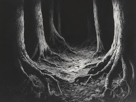 forest dark floor insects crawling graphite drawings detailed tiny creatures decayed leaves texture realistic shading monochrome study nature organic movement woodland life fine intricate study illustration black white artwork pencils drawing eerie natural hiddenImagine Buddy