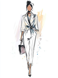 Minimalist chic outfit with clean lines and effortless elegance, fashion sketch emphasizes simplicity and style, fashion design sketches, fashion flats