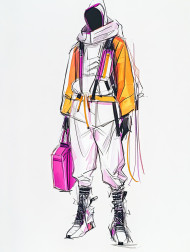 futuristic bold innovative sharp angles edgy high-tech experimental modern avant-garde fashion concept structure sleek statement trendsetting couture stylish artistic illustration sketch fashion sketch fashion design sketches fashion flats dramatic impactful vision aesthetic unique cyber techwear striking silhouette contemporaryImagine Buddy