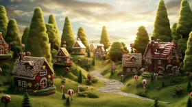 Magical gingerbread village in a frozen forest, christmas stock image ai, christmas stock photos ai