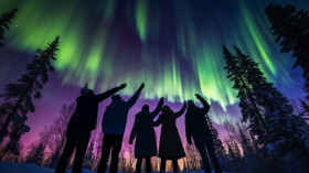 A family standing in a clearing in the woods, christmas stock image ai, christmas stock photos ai