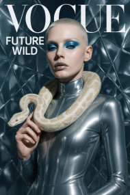 androgynous platinum python silver makeup model buzzcut futuristic chrome latex icy albino capsule serpent blue metallic mirror avantgarde editorial porcelain minimal studio cover spotlight chatgpt fashion styling monochrome surreal bold geometric cool edgy concept wild animalImagine Buddy
