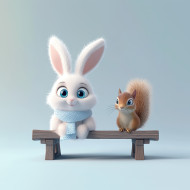 bunny fluffy 3d cartoon animal cute rabbit squirrel pixar style character whimsical bench gradient soft texture playful ears eyes pink scarf clean illustration detail round adorable background digital vibrant heartwarming scene simple smooth lighting warm pastel furry midjourney promptImagine Buddy