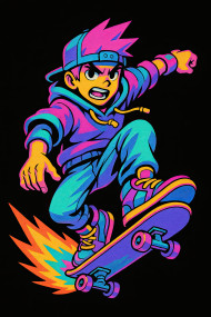 skater boy sneakers jet anime punk manga tshirt digital dynamic bold vibrant neon prompt celshading character y2k edgy apparel silhouette center hero merch black pose linework japanese clean illustration hiphop action contrastImagine Buddy