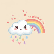 cloud rainbow cute cartoon smiling cuddle hearts love cheerful rosy illustration funny valentine weather sky colorful pun flat character kawaii beige happy sticker adorable playful fluffy dreamy rain friendship clean light joy sweet air sunny softImagine Buddy