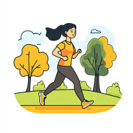 Young woman jogging in park with energetic pose, fun cartoon icon in bold outline style, fitness and lifestyle concept for wellness or health-related use