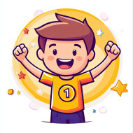 boy win first medal trophy champion competition victory happy vector icon cartoon solid bold outline logo emblem fun simple character 2d white background illustration sports achievement event child celebrate number gold smile rank proud contestImagine Buddy