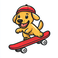 dog skateboard ride pet animal fun vector icon cartoon solid bold outline logo emblem simple character 2d white background illustration cute puppy move wheels trick urban tail happy active balance energetic paw canine playful speedImagine Buddy