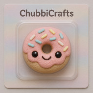 donut chibi clay pastel cute buddy kawaii toy handmade miniature soft textured polymer packaging product square compact centered layout dreamy flat card blister clear adorable molded craft dessert sweet icing pink charming collectible characterImagine Buddy