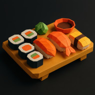 sushi platter nigiri maki wasabi rice fish seaweed colorful food 3d icon origami paper minimal cute dark background japanese traditional detail roll fresh decorative layered design soy chopsticks cuisine artistic gourmet modern style folded intricate snackImagine Buddy