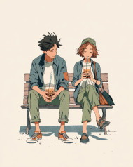 boba tea sunset couple bench straws love sip park glow gaze sweet share tender serene mood dusk soft cozy warm charmImagine Buddy