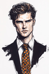 fashion man tie patterned sketch illustration stylish pen confident portrait trendy formal elegant drawing ink male textured accessory modern chic clothing bold minimal outlined structure shape black fashionable suave statement crisp outline figure business expression flair refinedImagine Buddy