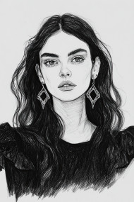 fashion woman earrings chunky sketch illustration stylish pen feminine bold portrait trendy accessory elegant drawing jewelry ink confident expression modern minimal figure outlined texture shape black chic statement soft glamorous structure fashionista flair young beauty design uniqueImagine Buddy