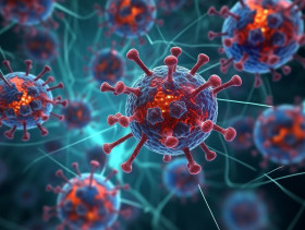 Photo 3d render of an abstract medical background with low poly virus cells on particle design, health and medical stock image