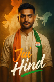 youth ethnic scarf badge patriotic india digital watercolor map traditional attire tricolor script handwritten bold confident standing male vibrant portrait ambient culture fabric mood saffron green independence cinematic hero realistic proud heritage jai hind poster chatgptImagine Buddy