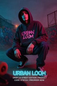 Young model in oversized hoodie and denim cargos at neon lit skatepark with graffiti walls and smoky haze, edgy urban streetwear, clothing brands chat gpt prompts
