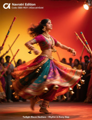 woman young spin garba dance rose gold anklets ghungroo bells sparkling festive night jewelry motion celebration tradition cultural rhythm joy festival twirl ethnic accessories style graceful elegant heritage indian vibrant charm party jewelryproduct prompts happiness ornament performanceImagine Buddy