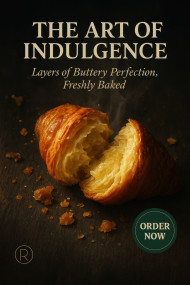 croissant golden torn buttery layers steam rising flakes suspended richness pastry breakfast bakery french flaky indulgent luxury macro food poster design delicious baked gourmet elegant artisan crispy puff styled plated closeup wheat aroma chatgptImagine Buddy