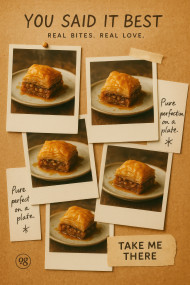 lamb chops grilled baklava dessert collage polaroid nostalgic foodie storytelling notes gourmet meat roasted cuisine dining dish charred styled handwritten flavor meal plate texture fresh rustic magic nostalgia charm delicious cook snack celebration retro appetizer rusticImagine Buddy