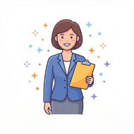 office worker clipboard standing flat vector friendly clipart smooth shapes front view sticker professional sparkles abstract dots vibrant palette simplified details clean edges polished illustration children material cheerful design prompt google gemini nano bananaImagine Buddy