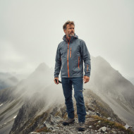 outdoor apparel hiking jacket rugged man adventure clothing exploration concept technical outerwear male model mountain landscape performance gear weather protection alpine ridge foggy scenery trekking style durability travel adventure nature lifestyle active outdoors resilience expedition prompt google gemini nano bananaImagine Buddy